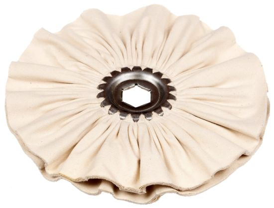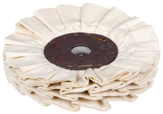 | 3) | Since the cloth surface area is larger in our pleated bias cloth buffs, it shows better preservation of polishing compounds. |